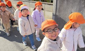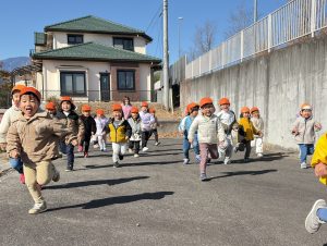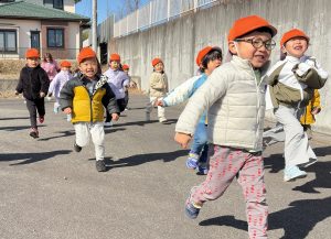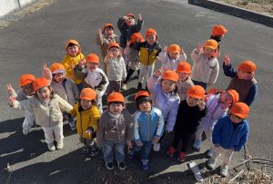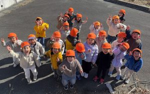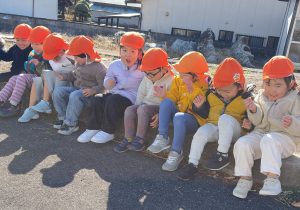 「給食室から火災が発生した」という放送を聞き、園庭に移動しました。