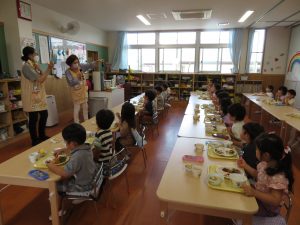 6月の保健給食指導は、歯の衛生週間にあわせて「虫歯予防と噛むことの大切さ」についての話をしました。