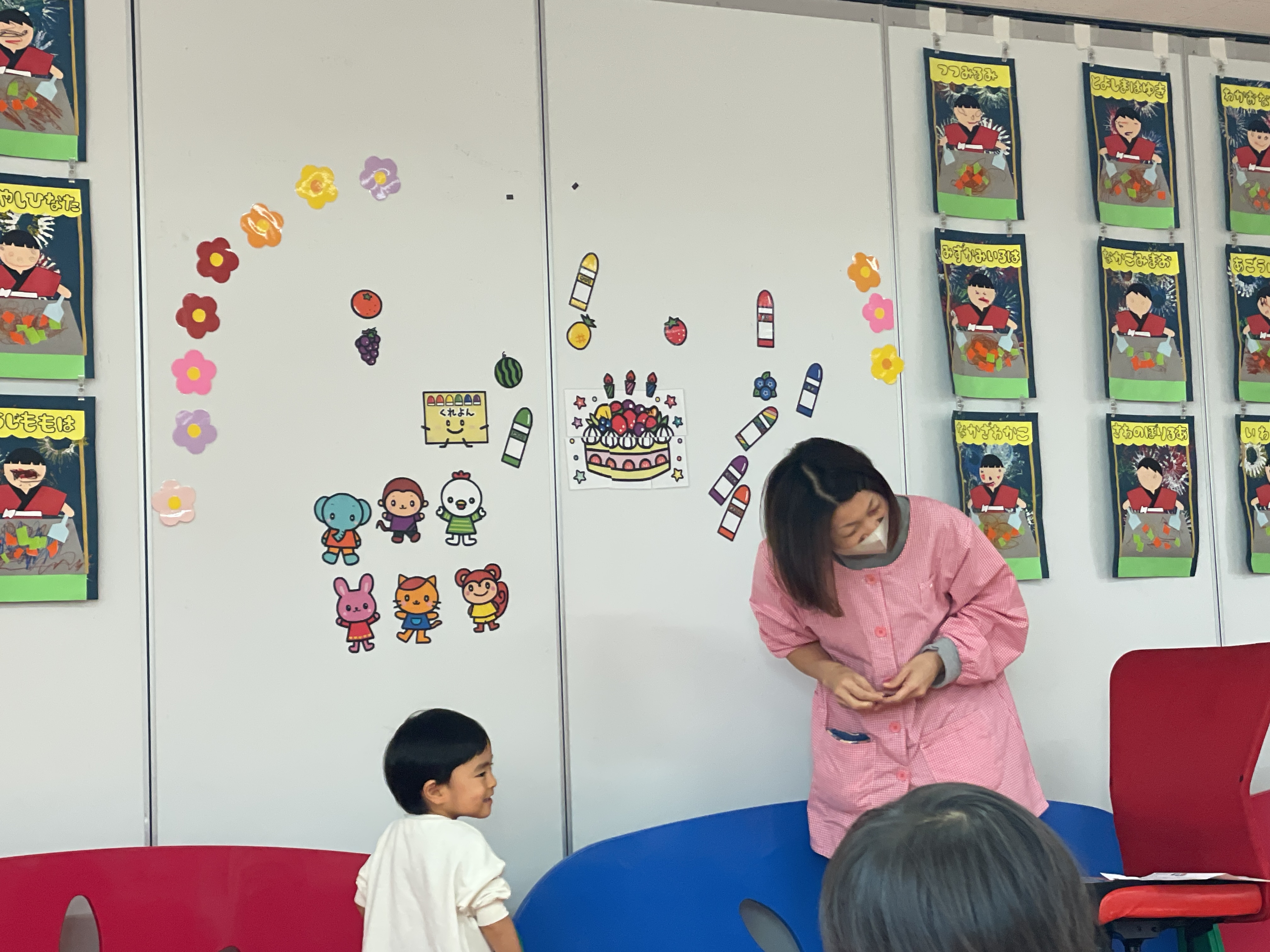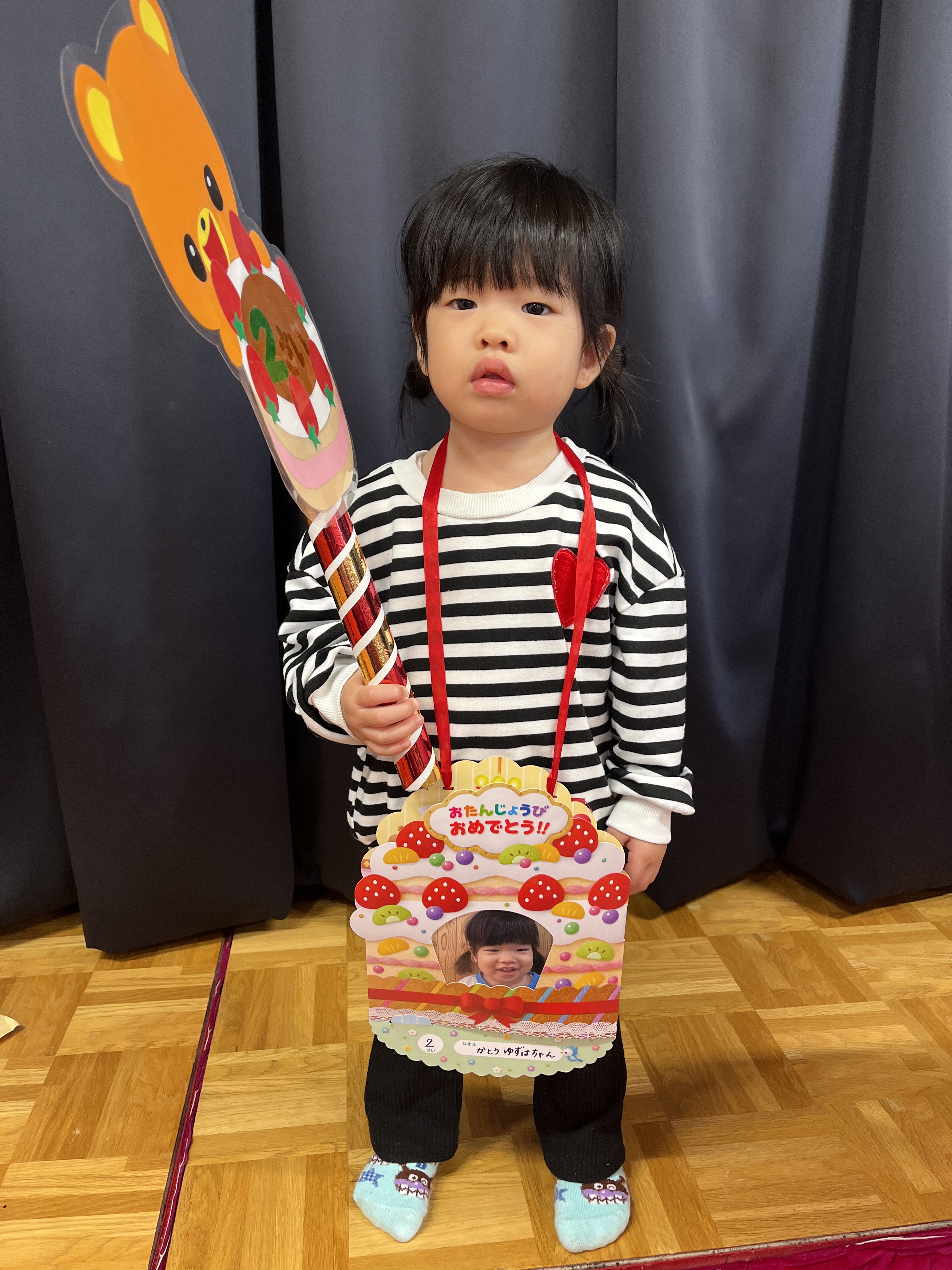 お誕生日会を楽しみにしてたようで、元気いっぱいでみんなの前に立ち、お名前の発表をしてくれました。