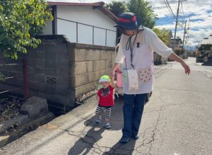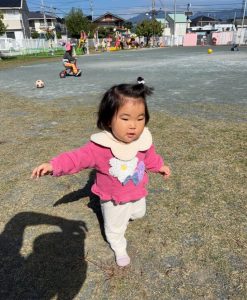 10月はお天気に恵まれて、沢山戸外遊びを楽しむことができましたよ!お散歩に行った時は少しずつ歩く体験も取り入れ始めました。