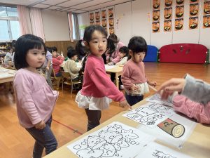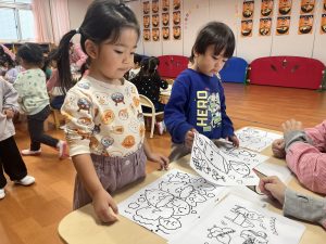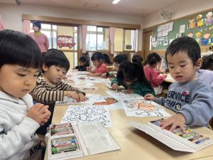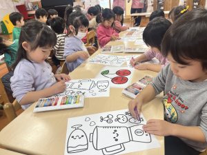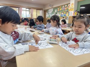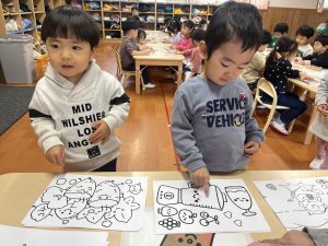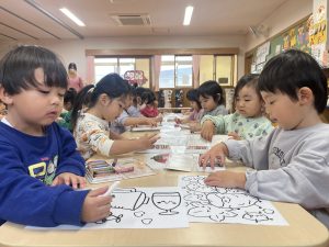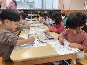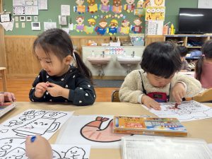 子ども達は自分でやりたい塗り絵を選び、楽しみながら取り組むことが出来ていましたよ♪