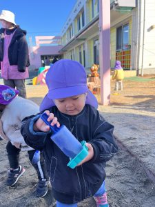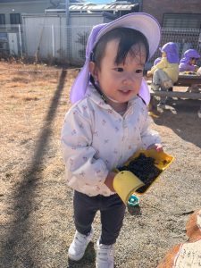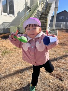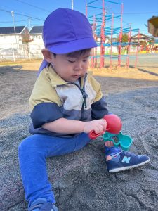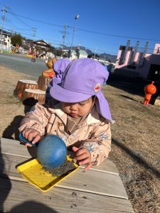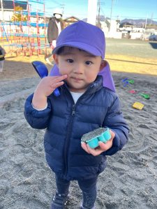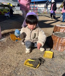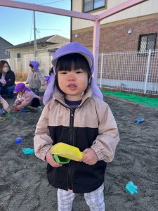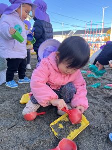 「お外に出てお砂場で遊ぶよ〜!」と声をかけると「やったー☺️」と大喜び。
