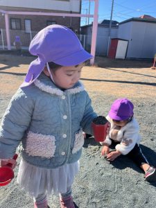 寒さに負けず、元気いっぱいで外遊びを楽しんでいます。