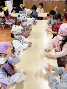 子どもたちは、さつま芋を丸くする工程で「丸められな~い💦」と訴える子も何人かいました。