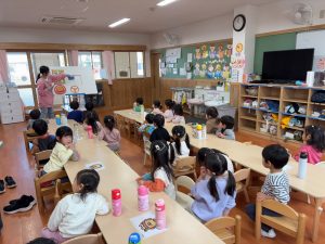 以上児はホール、未満児は各クラスでお誕生日会を行いました。