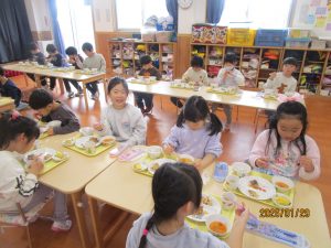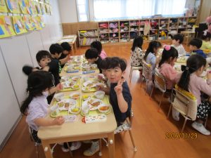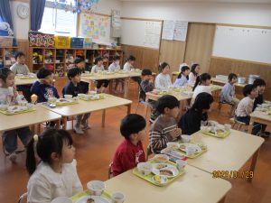 子どもたちは、「もろこしあった!」「トマトみっけ!」など、スープの中の食材を見つけながら食べていました。