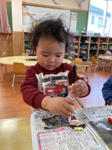 別の日には、お雛様やお内裏様の顔をペンで描きました。
