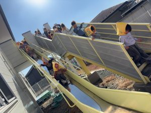 子ども達には、「地震で非常ベルが壊れてしまう場合もある」こと、「放送が聞こえたら、慌てず先生の話を聞いて避難する」ことを伝え、訓練を終えました。