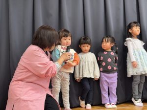 職員からのお祝いはクリアファイルマジック!みんなが大きな声で答えてくれたので賑やかになりましたが、興味津々で見てくれていました!