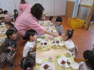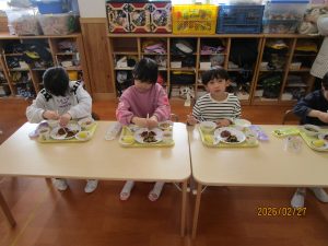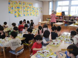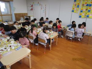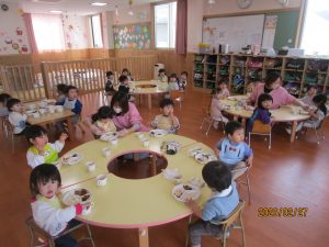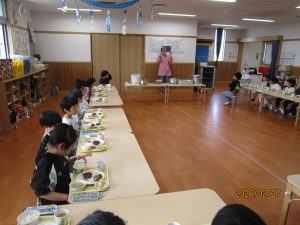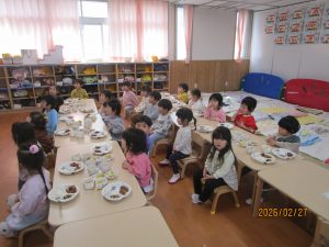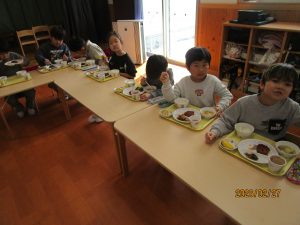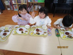 ひまわり組さんは、給食の中の野菜を見つけて「トマトあった!!!」