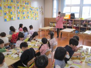 すみれ組さんでは、本を読み終えた先生が「〇〇さんの好きな野菜はなんですか?」と