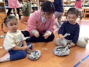 ホットケーキミックス+砂糖を器の中で混ぜます。