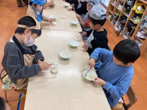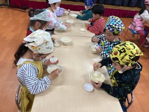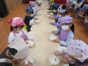 ホットケーキミックス+砂糖を器の中で混ぜます。