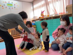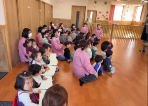 今回の内容は、子どもの発達に大きく関わるとても大切な内容となるため、保育士だけでなく園長始め看護師、栄養士、調理員すべての職員が参加しました。その他、松島さくら保育園の栄養士と看護師、園医の畑歯科の歯科衛生士さん2名も参加してくださり、大勢での研修会となりました。