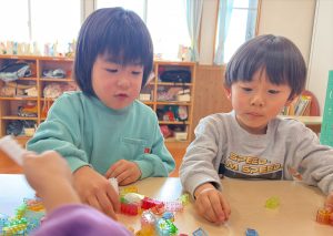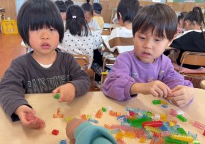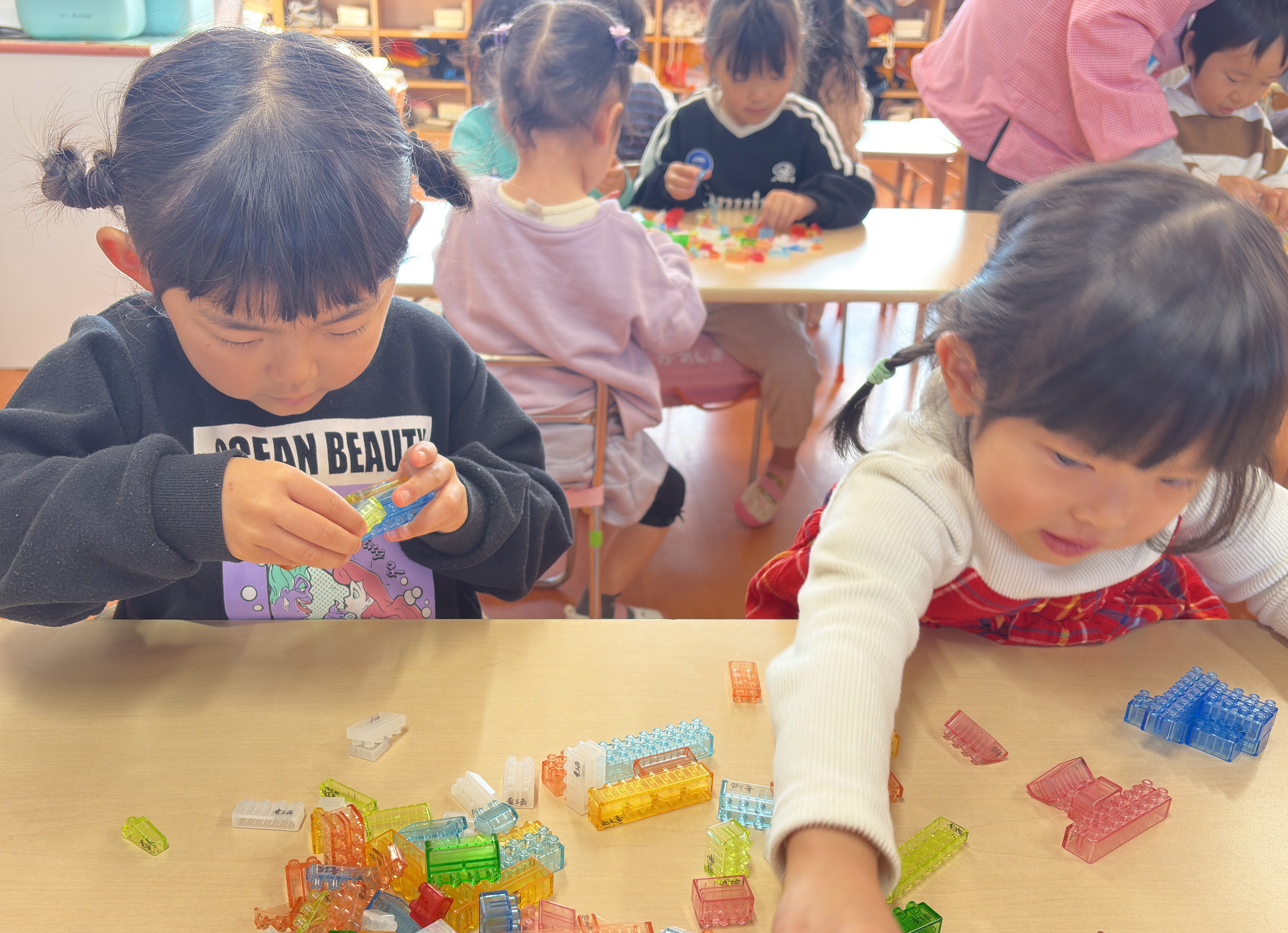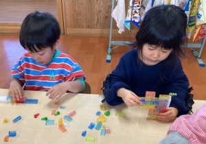 赤色、青色どっちがいいのか聞くと「こっち!」と教えてくれて興味津々で取り組んでくれました。