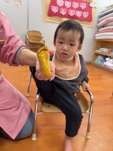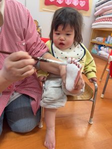 冬の製作で足形をとりました。どんな作品になるかお楽しみに!