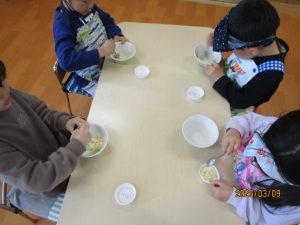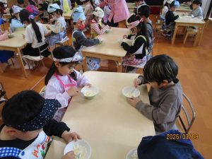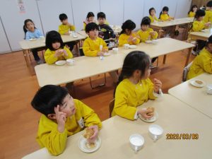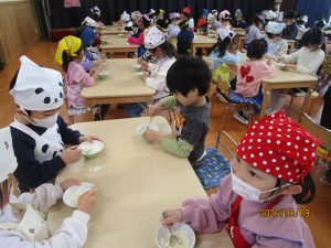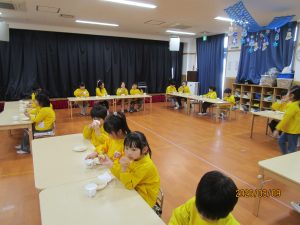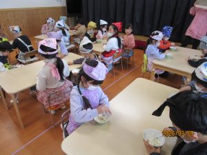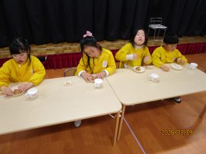 お別れ会の後はひまわり組とさくら組一緒に、ひまわり組リクエストメニューの給食を美味しく楽しく食べました!