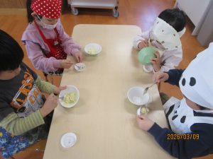 今日は今年度最後のCookingで「お豆腐パン」を作りました。