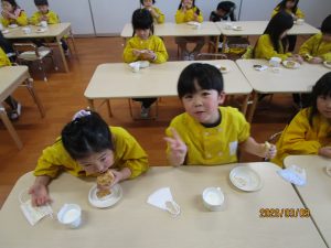 「美味しい~!」「お家でも作りた~い」「どのくらい焼くの?」など、とっても好評でした。材料2つで作れるので、ぜひお家でも作ってみてくださいね♡
