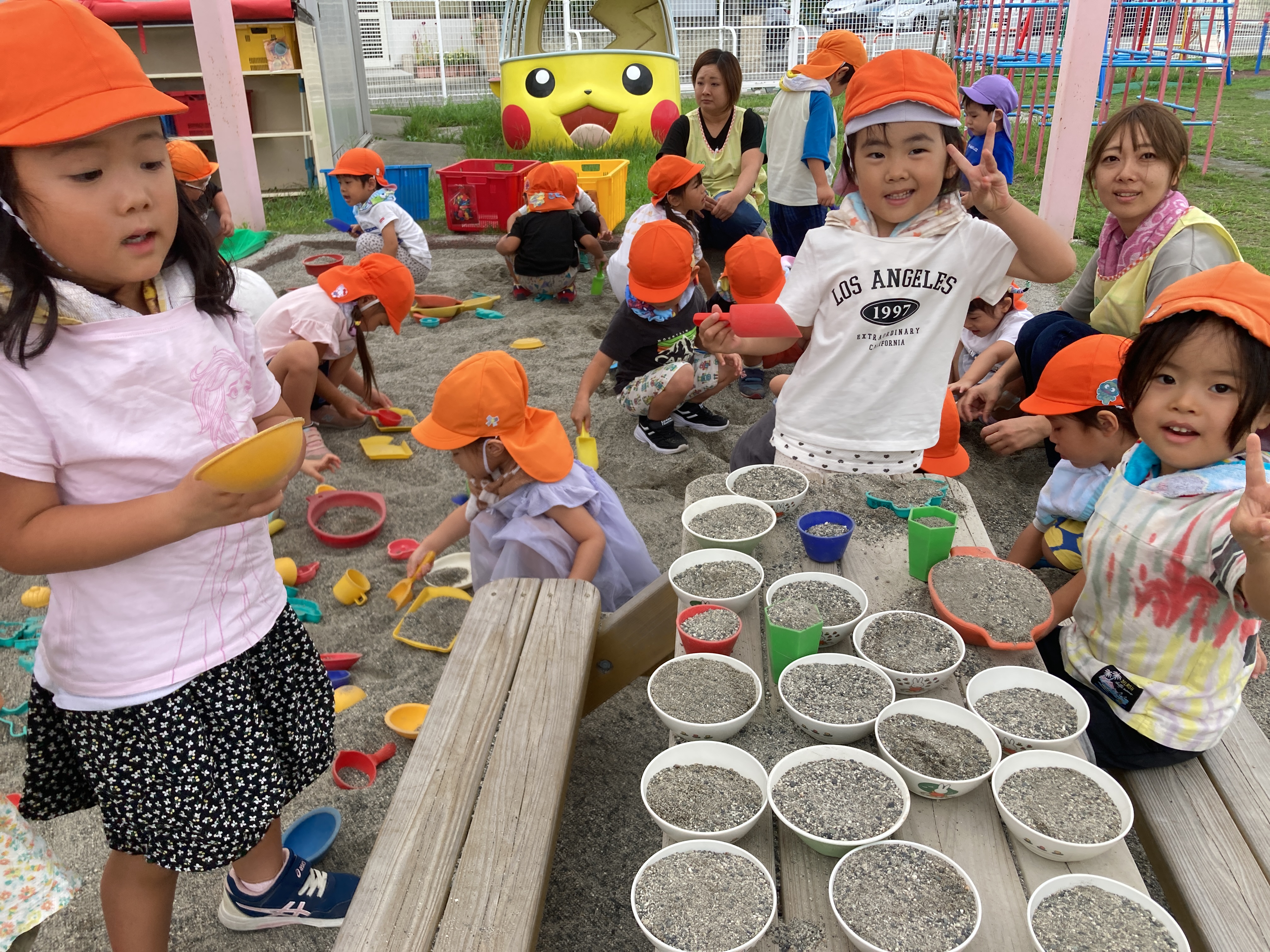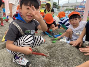 みんなのブームはお砂遊びで、山を作ったり料理を作ったり