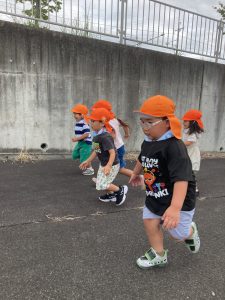 少し広い場所で休憩した後は、みんなで追いかけっこを楽しみました☆「よーい、どん」がとっても大好きです!