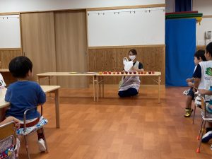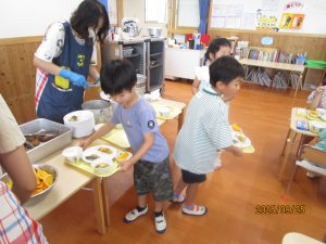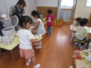 すみれ組さんには、さくら組のお当番さんが配ってくれました。