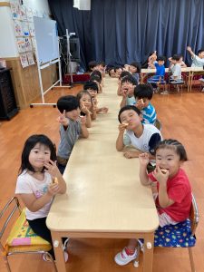 苦手な子もご飯の前の時間に食べれるのは特別感が出て美味しいのかみんな完食でした♡