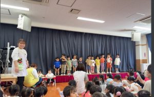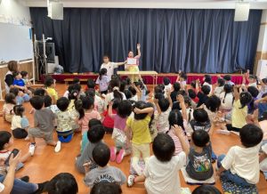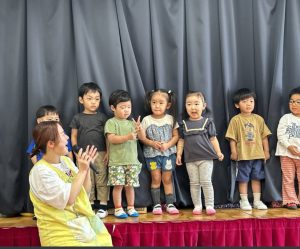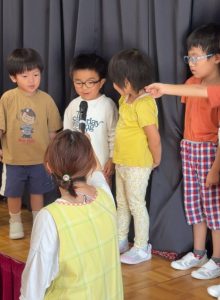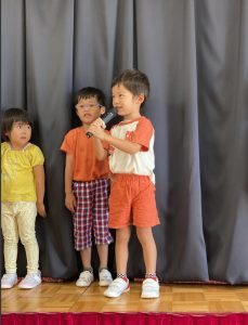 お誕生日のお友達は舞台に上がり緊張している子もいれば嬉しそうにする子もいました😊