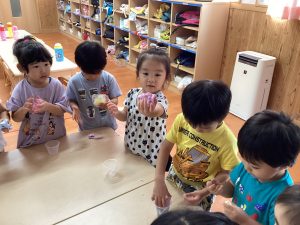 9月の感触遊びはスライム遊び!