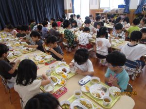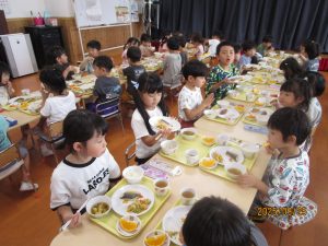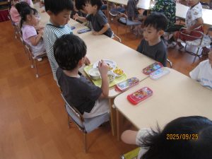 さくら&ひまわり組は合同で食べました。