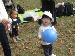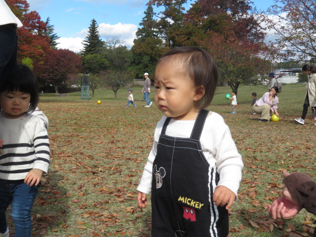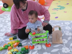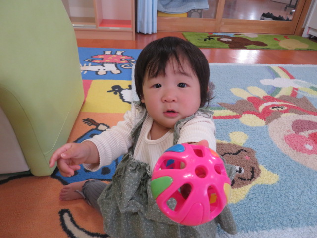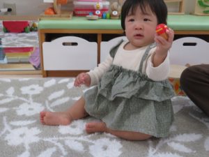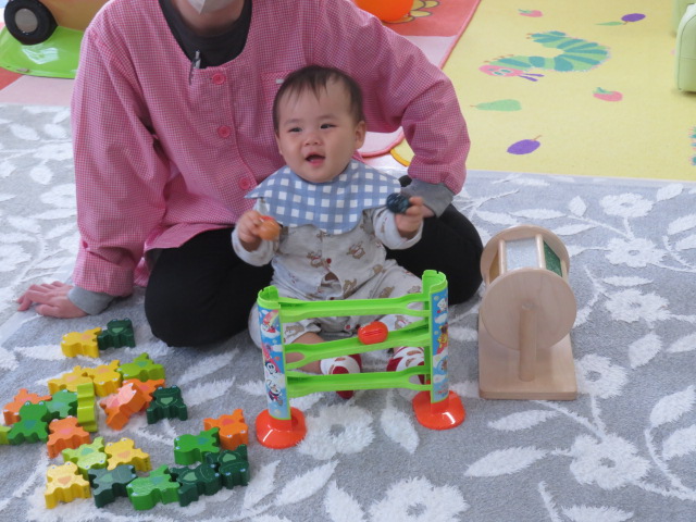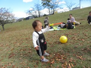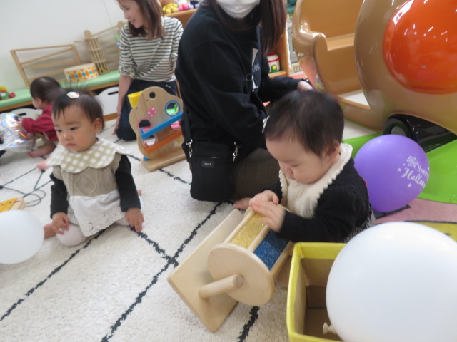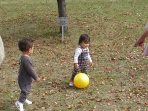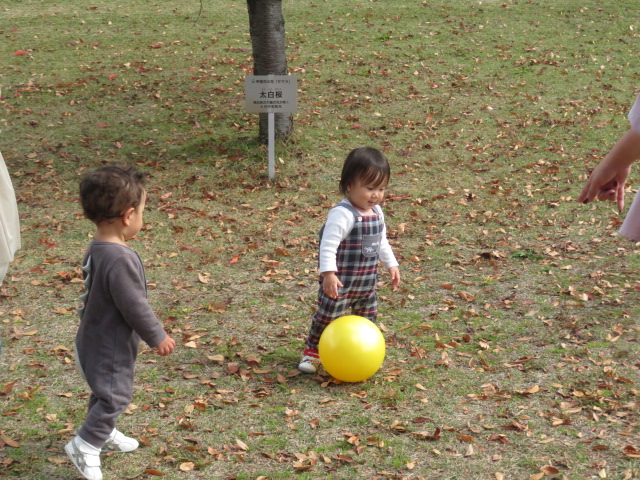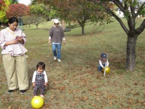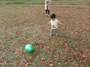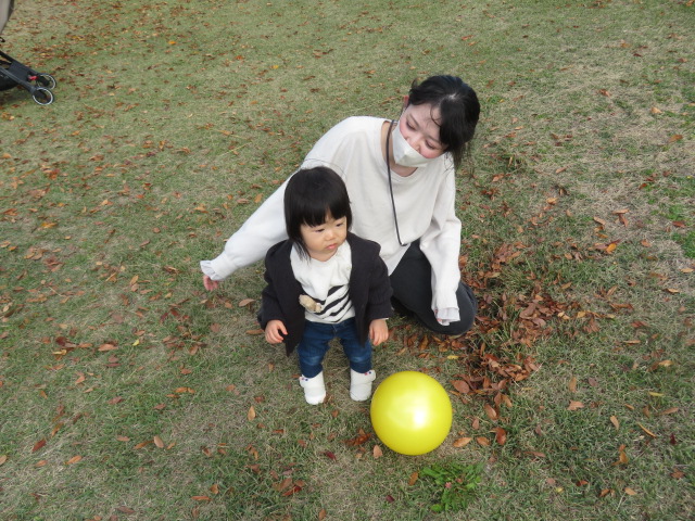 ママと一緒に追いかけたり、坂からボールを転がして楽しんだり