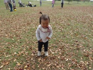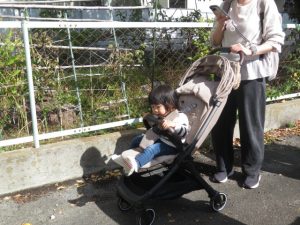 歩いている最中も落ち葉を拾ったり、猫じゃらしを見つけたり!