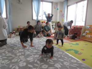 ガタガタ揺れるサークルを電車だ~と楽しむ姿も、、、♡