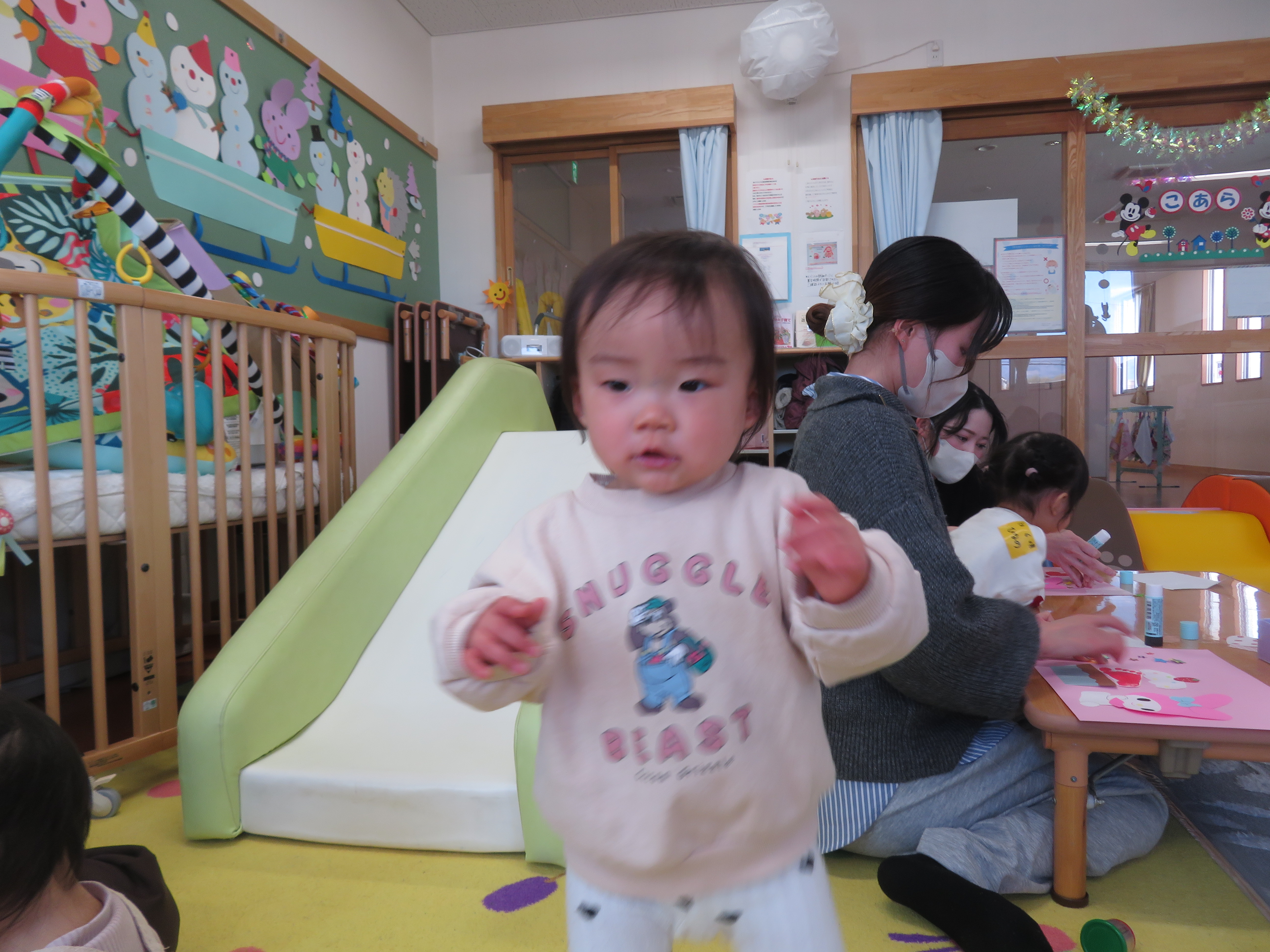 R5.5月からコロナウィルス感染症が5類に位置付けられましたが、小さなお子様たちの安全を考え、引き続きご配慮をお願いしたく、次のような対応とさせていただいています。