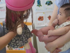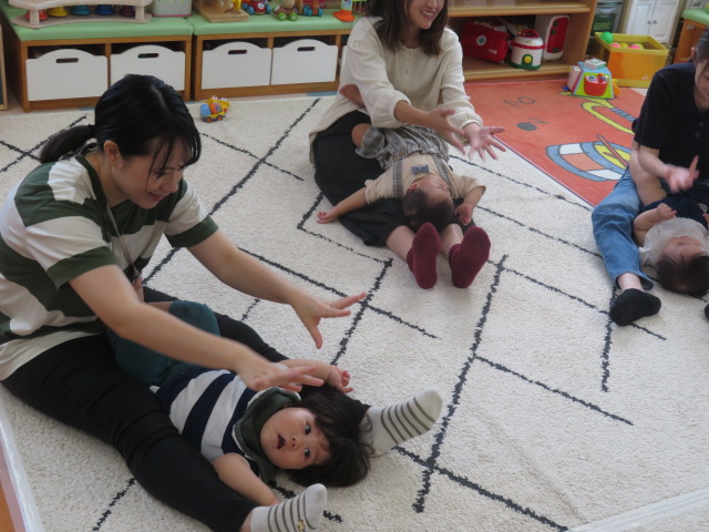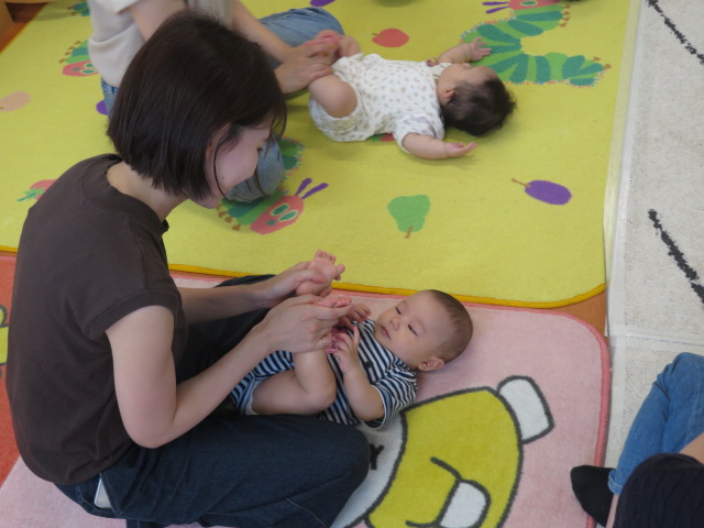 ふれあい遊びでは色々なわらべうたや、マッサージをしました!