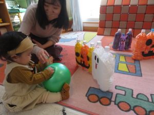 その後はゲームをママと一緒に楽しみ、ハロウィンの