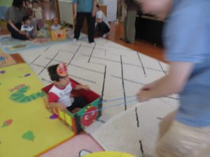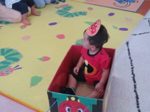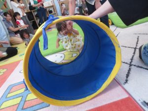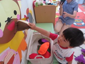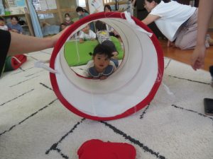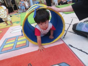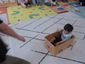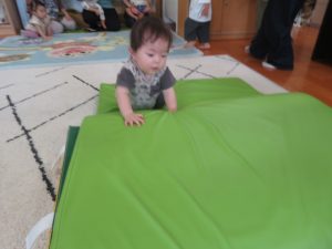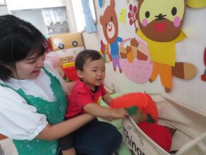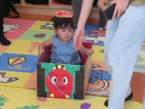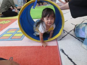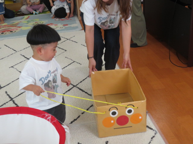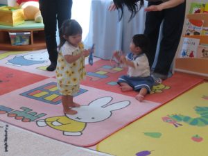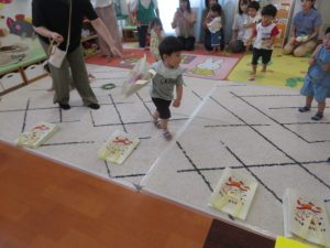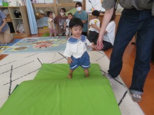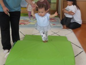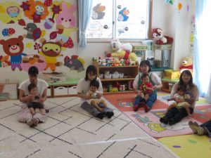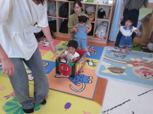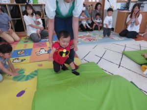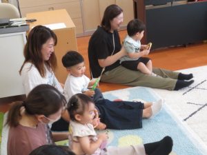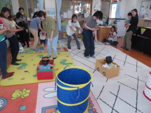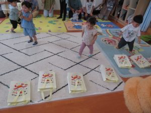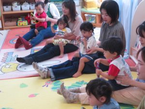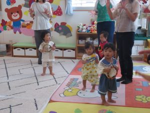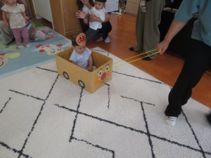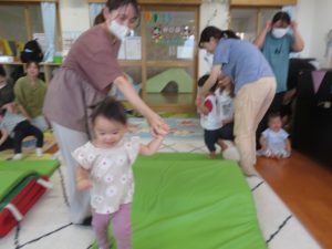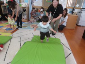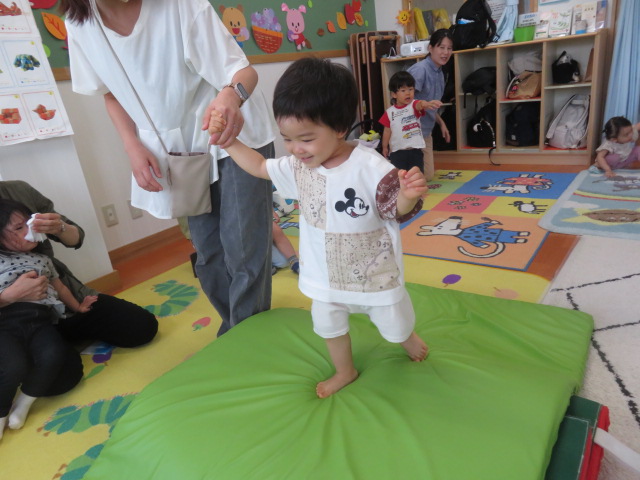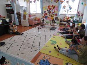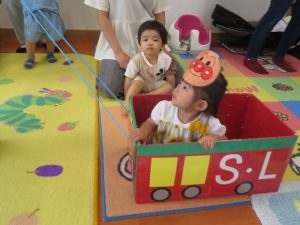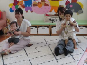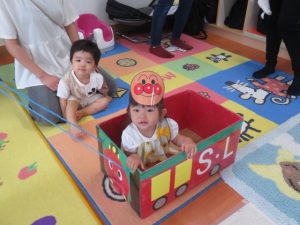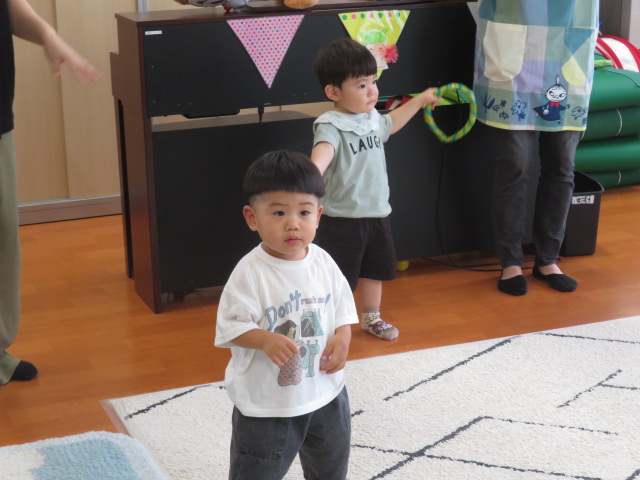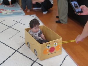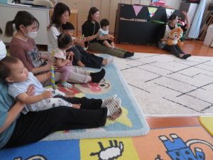 また、バスに乗ってを親子で楽しんだりサンサン体操を踊ったりと