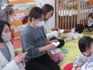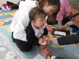 ママ達の足のサイズも測ってもらったり、足の悩みも
