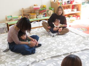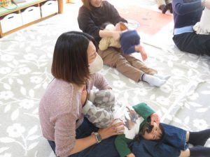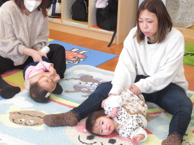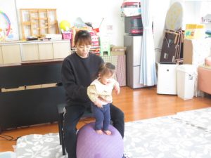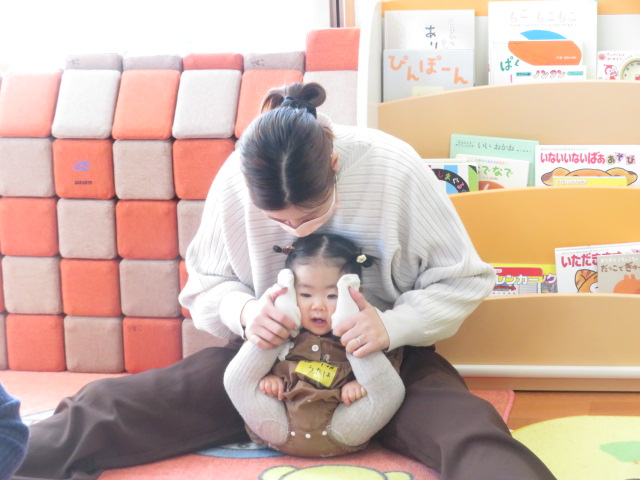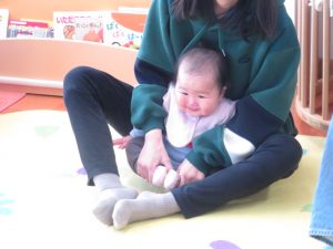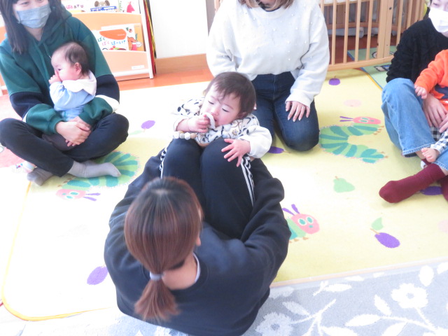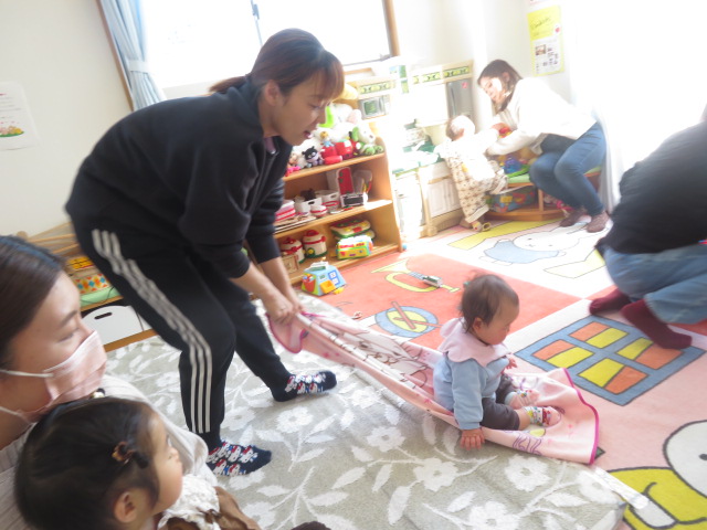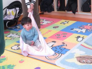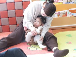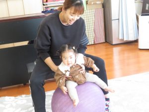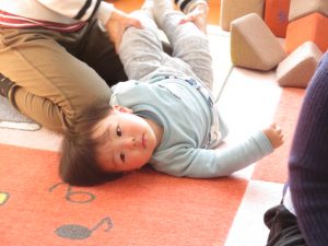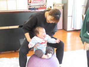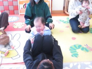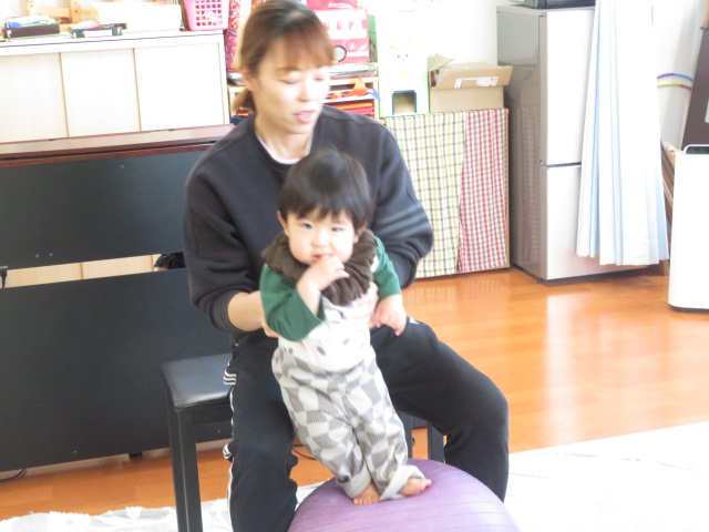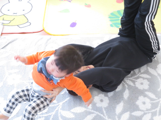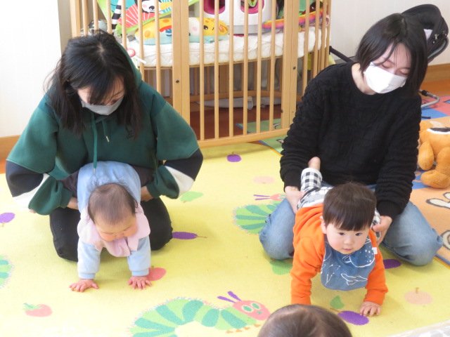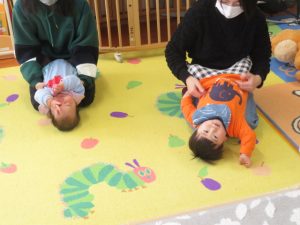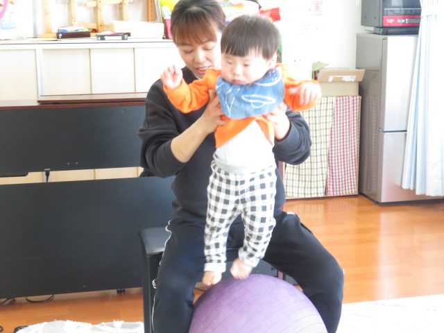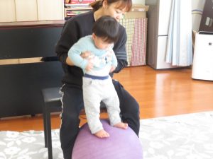 ママと一緒にユラユラしたり、前に倒れて両手が出るか