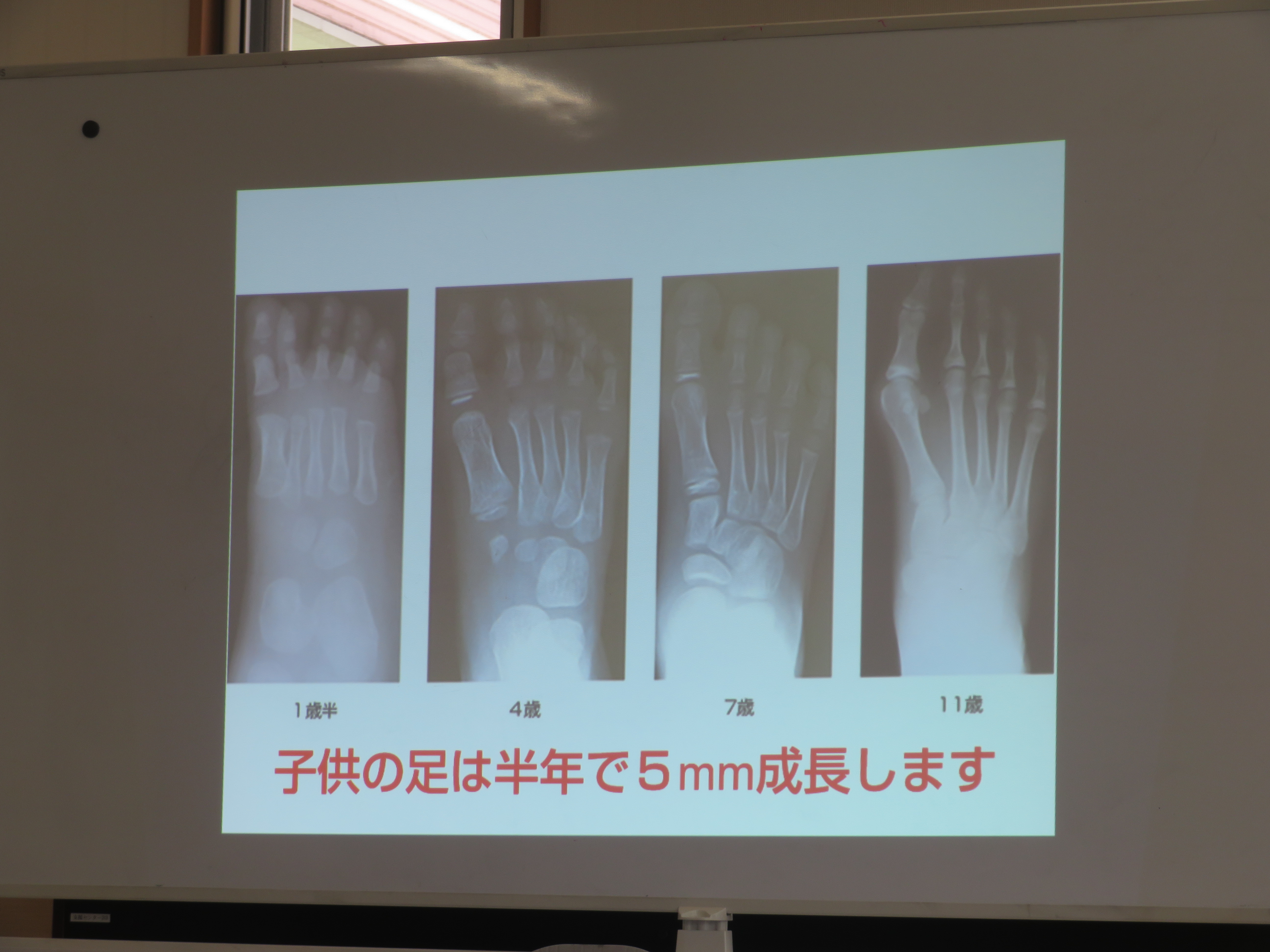赤ちゃんの足の骨はほとんどが軟骨で、足の骨格が完成するのが11歳ごろ、大人の足に