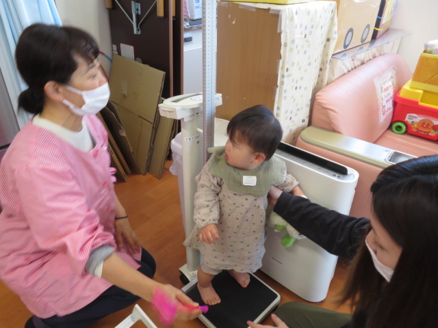 月齢が大きいお友達は自分から測定しに来てくれました❣