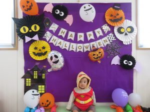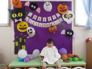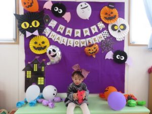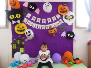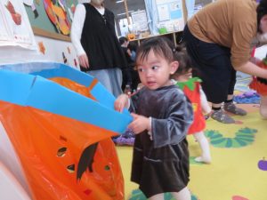 ハロウィンのフォトブースで写真を撮ったり、カボチャのカバンに