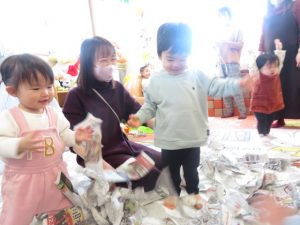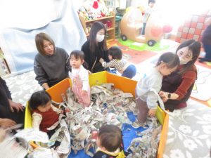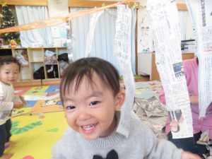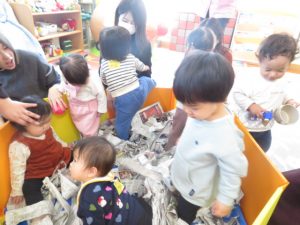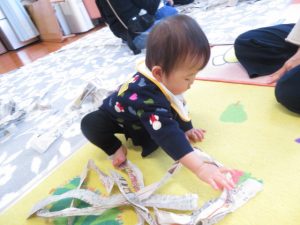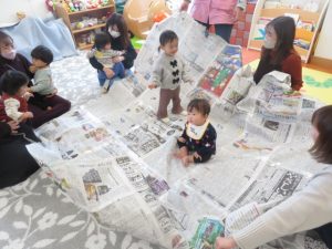 大喜び♡新聞紙の音や感触を楽しめましたね😊
