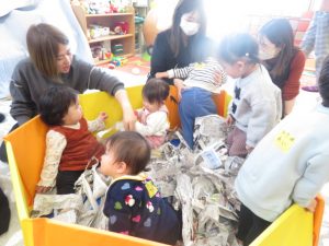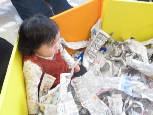 また破った新聞をプールにたくさん入れて、新聞プールも