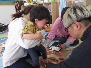 お子さんの足のサイズとママ・パパの足のサイズも測ってもらったり、