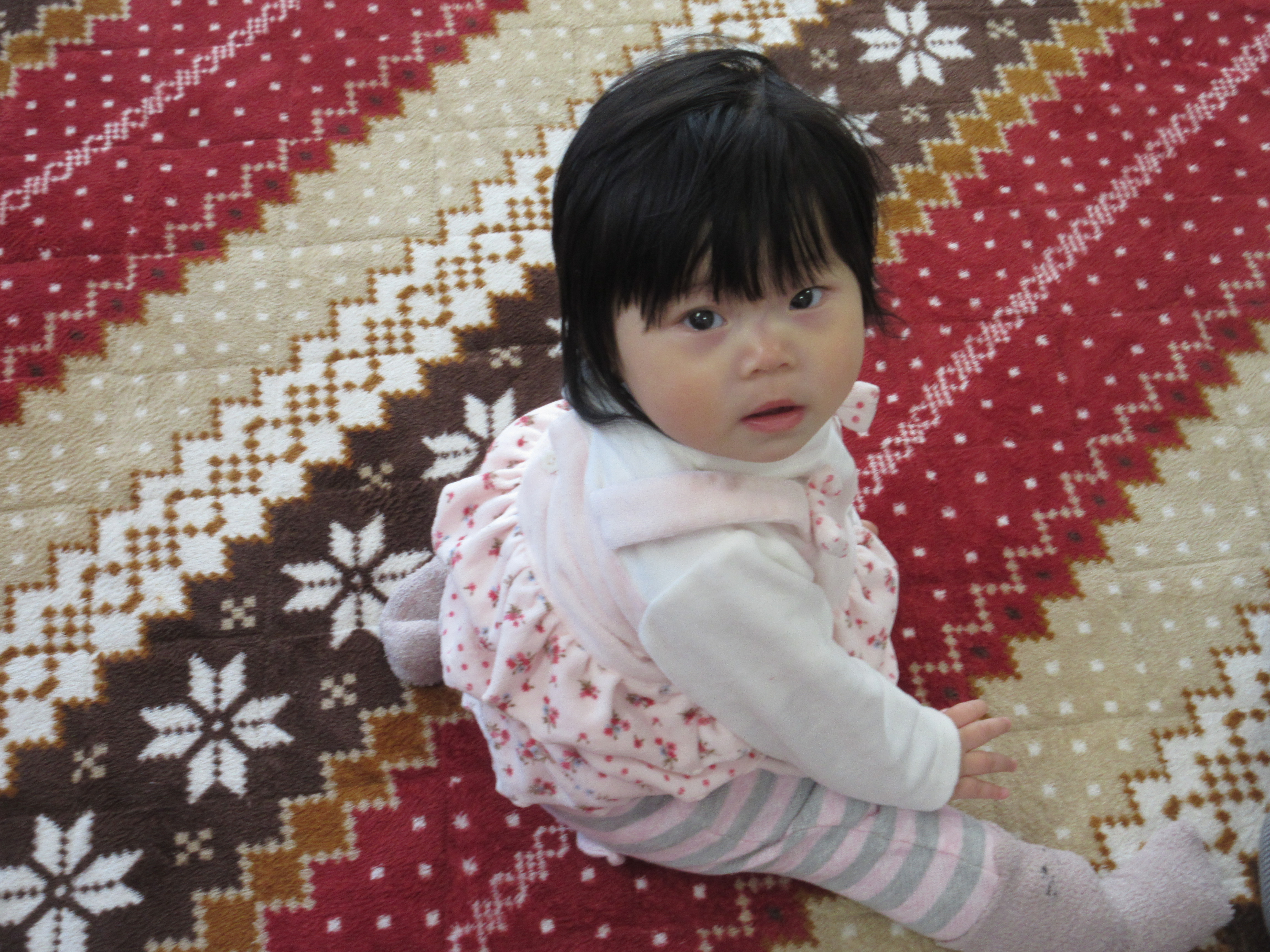 今日は、リズム遊びの日。ママに「ぶら~ん、ぶら~ん」と身体を揺らしてもらったり、「ごしごし」擦って