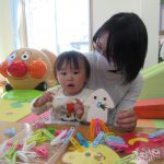 楽しんでいました。カニの手やイカの足、ウサギの耳や創作ベンチ等、ママと一緒に作って喜んでいましたね。