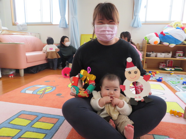 リースでは折り紙にシールをペタペタ貼ってもらいました★