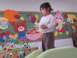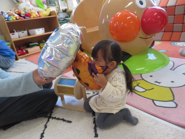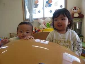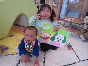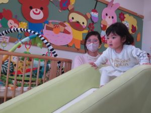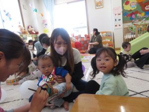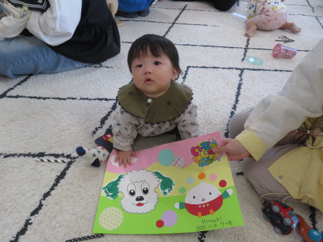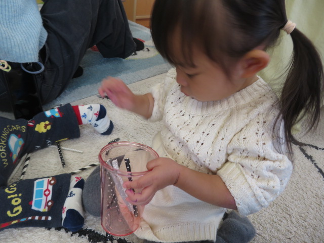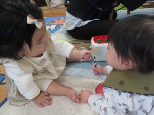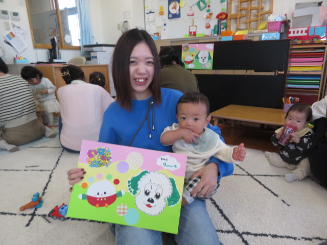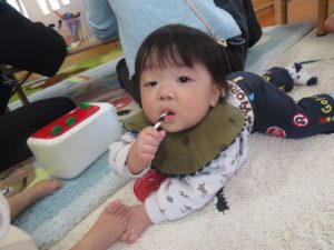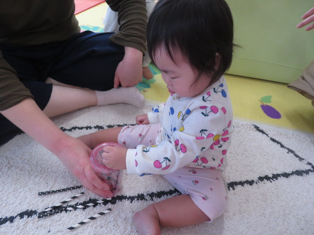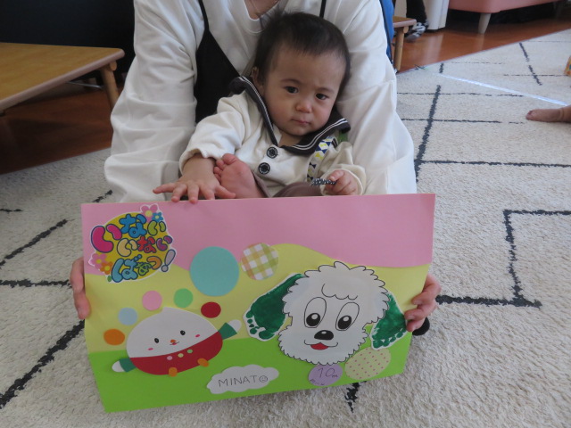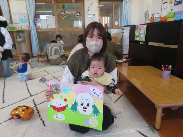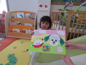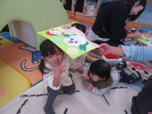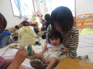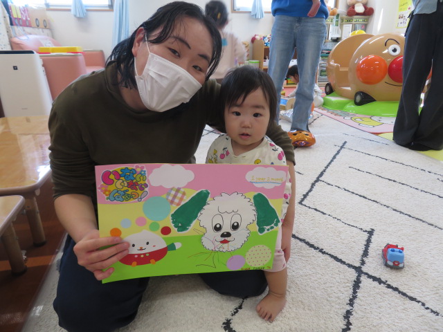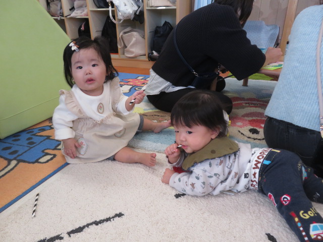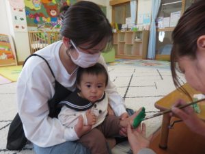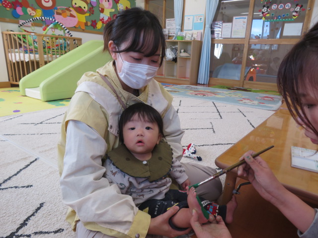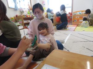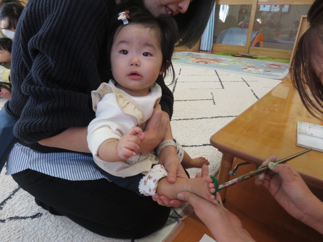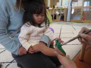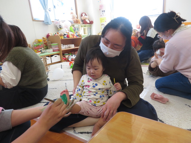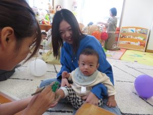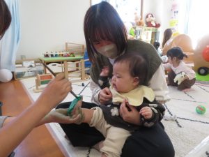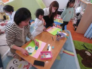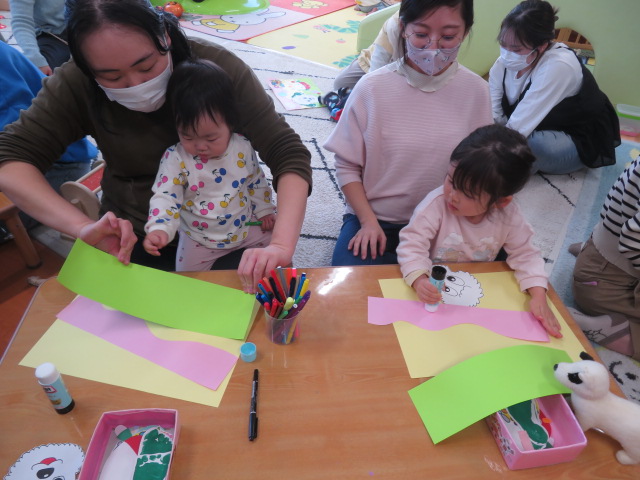 月齢上のお友達はママと一緒にのり付けしたり