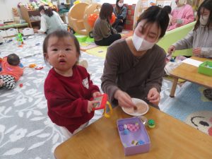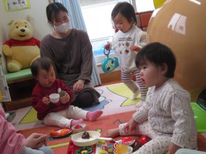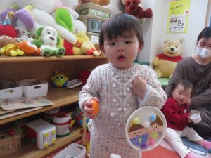 今日は月齢が様々で、上の子の真似をして遊ぶ姿がみられ